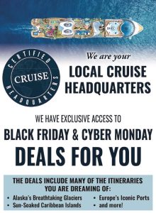 Black Friday Cruise Deals are here! We spoke directly to Marianne Hessler, our National Accounts Manager of Royal Caribbean. Marianne recently joined JCV World Travel President, Matt Cervone, on a podcast to basically deliver insider tips for this season’s cruise deals. Marianne advised connecting with a travel advisor at Just Cruises and Vacations (JCV World Travel) to secure the best Black Friday Cruise Deals. Beginning now we will apply Black Friday, and the following Cyber Monday Deals through to Dec. 2nd booking window. This is the travel industries biggest booking period of the year.